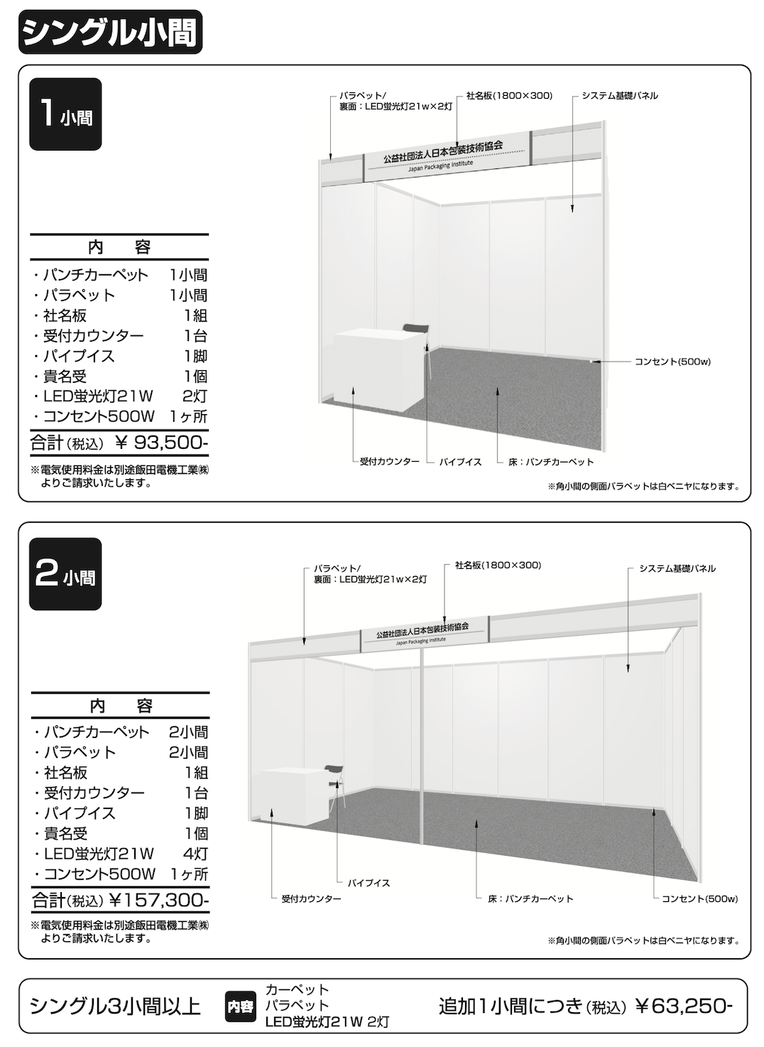 - ※「会員」とは、主催者である公益社団法人日本包装技術協会ならびに日本MH協会の法人会員に入会・登録している法人のこと。(個人会員、また法人会員の関連企業は含まれません。“一般”の出展料金が適用されます。)